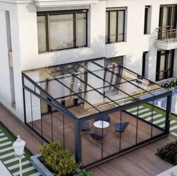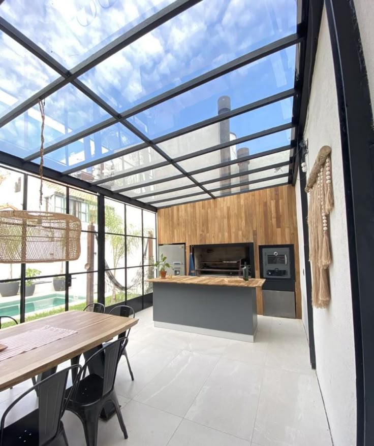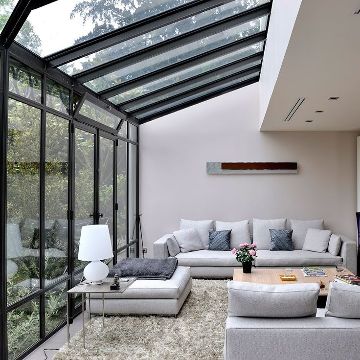 C’est l’association d’une Verrière (Skylight) , fixe ou télescopique (motorisée) sur le toit , avec des baies vitrées sur les façades